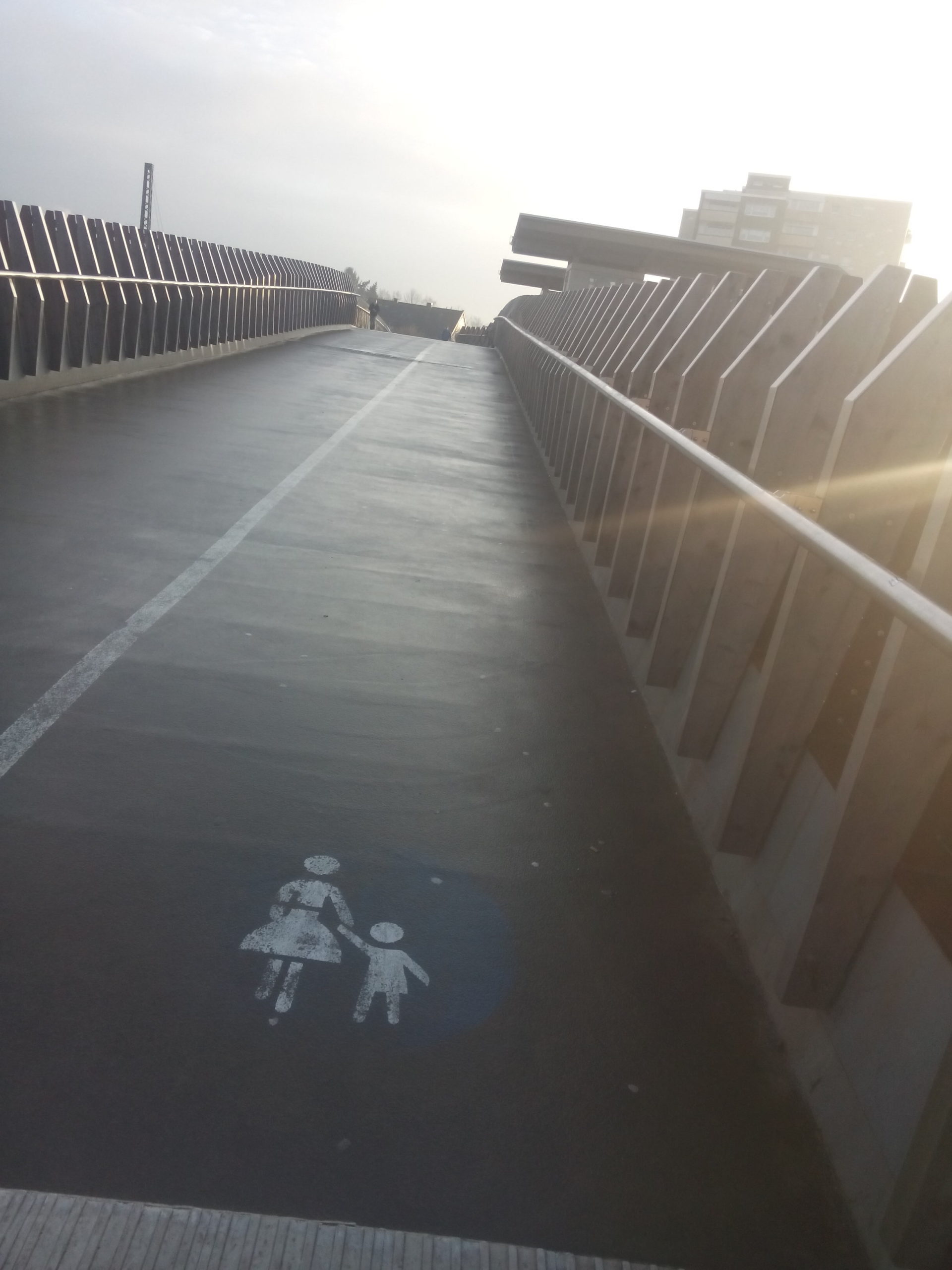 Was viele Bürger bei Eröffnung der Brücke nur leise angesprochen haben, wird jetzt zur Realität: Durch das Gefälle zu beiden Seiten wird die Brücke bei Glatteis zu einer großen Gefahr für die Bevölkerung, wenn nicht rechtzeitig und ausreichend gestreut wird!